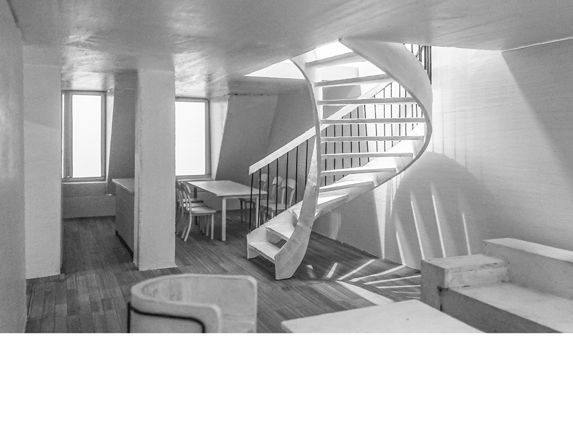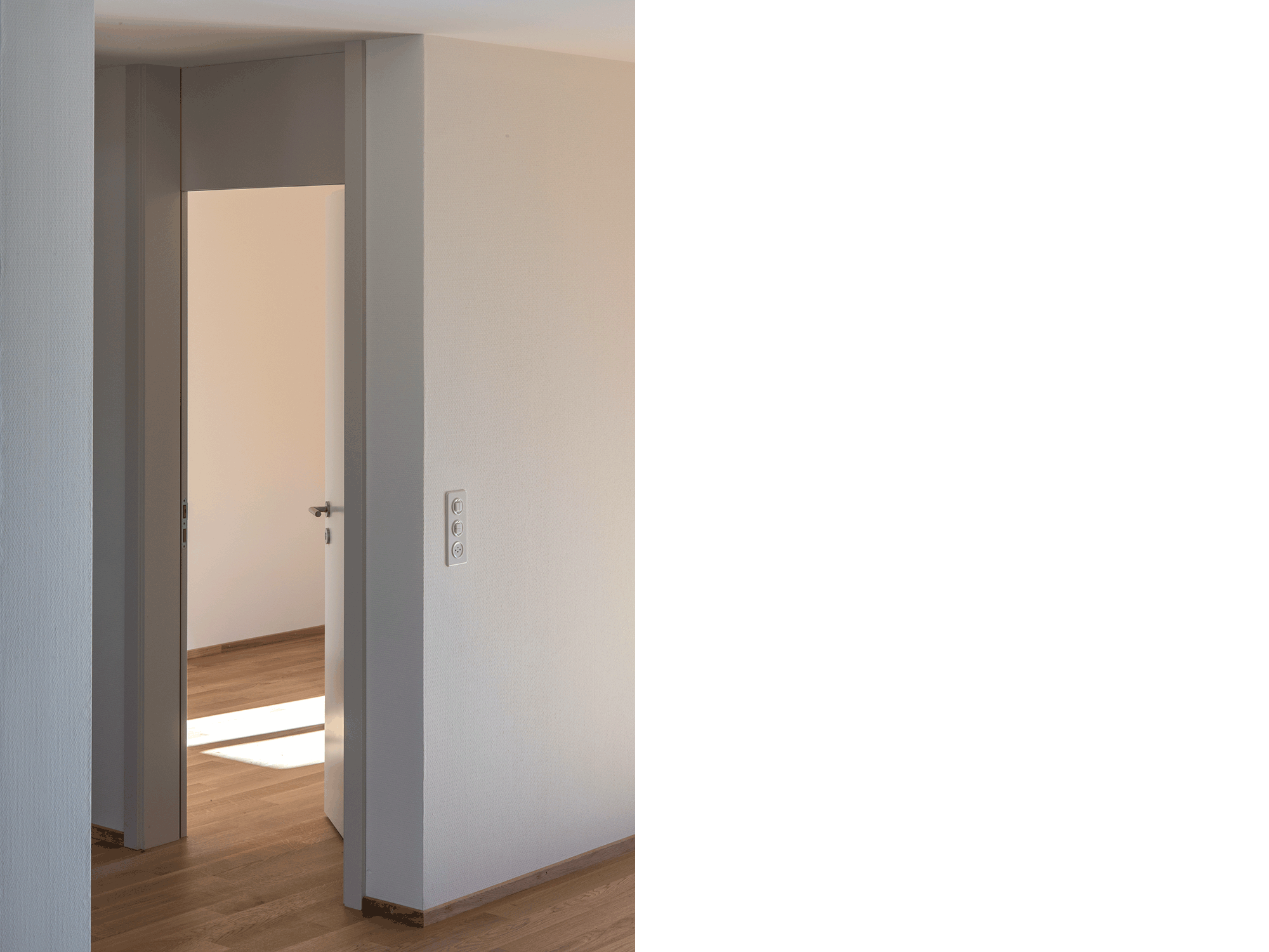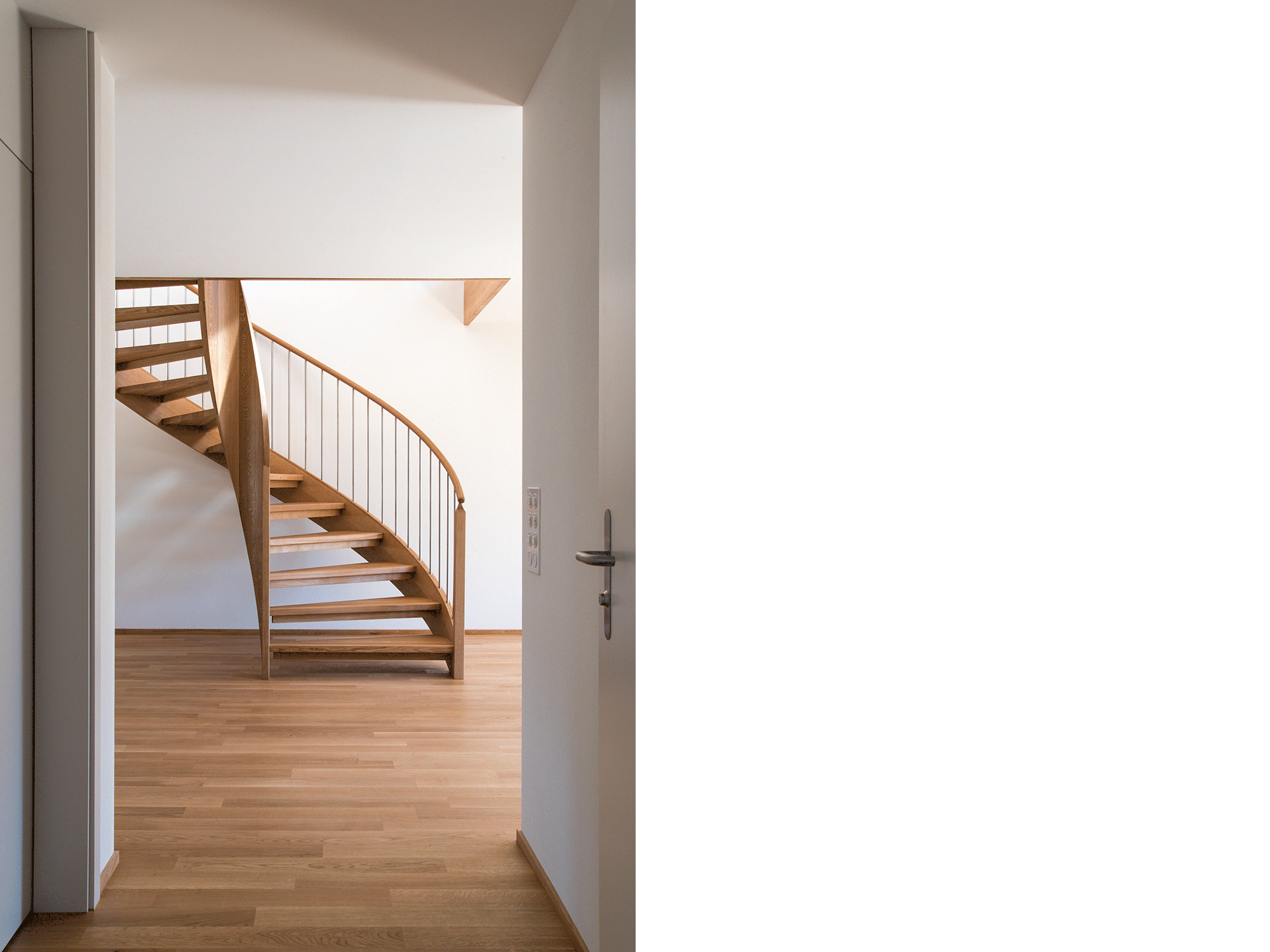Das Gebäude ist Teil einer historischen Blockrandbebauung aus dem beginnenden 20. Jh. Der Estrich wurde mit dem darunter liegenden Dachgeschoss zu zwei Maissonett Wohnungen ausgebaut. Beide Wohnungen haben einen Zugang auf die Dachzinne. Die neue Dachstruktur ist in Holzelementbauweise erstellt. Dies bedeutete eine kurze Bauzeit und tangierte die während der Bauzeit durchgehend bewohnten Obergeschosse so wenig wie nötig. Hofseitig wurden die Balkone durch grössere, in Stahl konzipierte Balkone vergrössert.